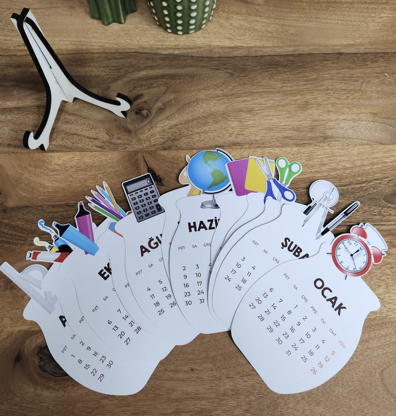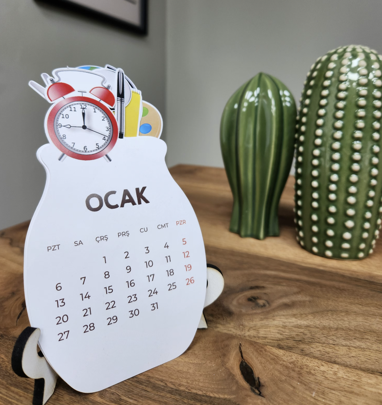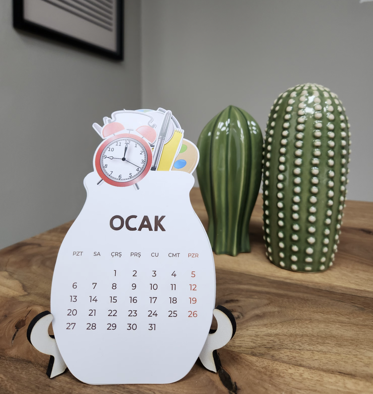 - Ahşap ayakları sayesinde sağlam ve dayanıklı bir kullanım sunan bu takvim, uzun süreli kullanım için idealdir.