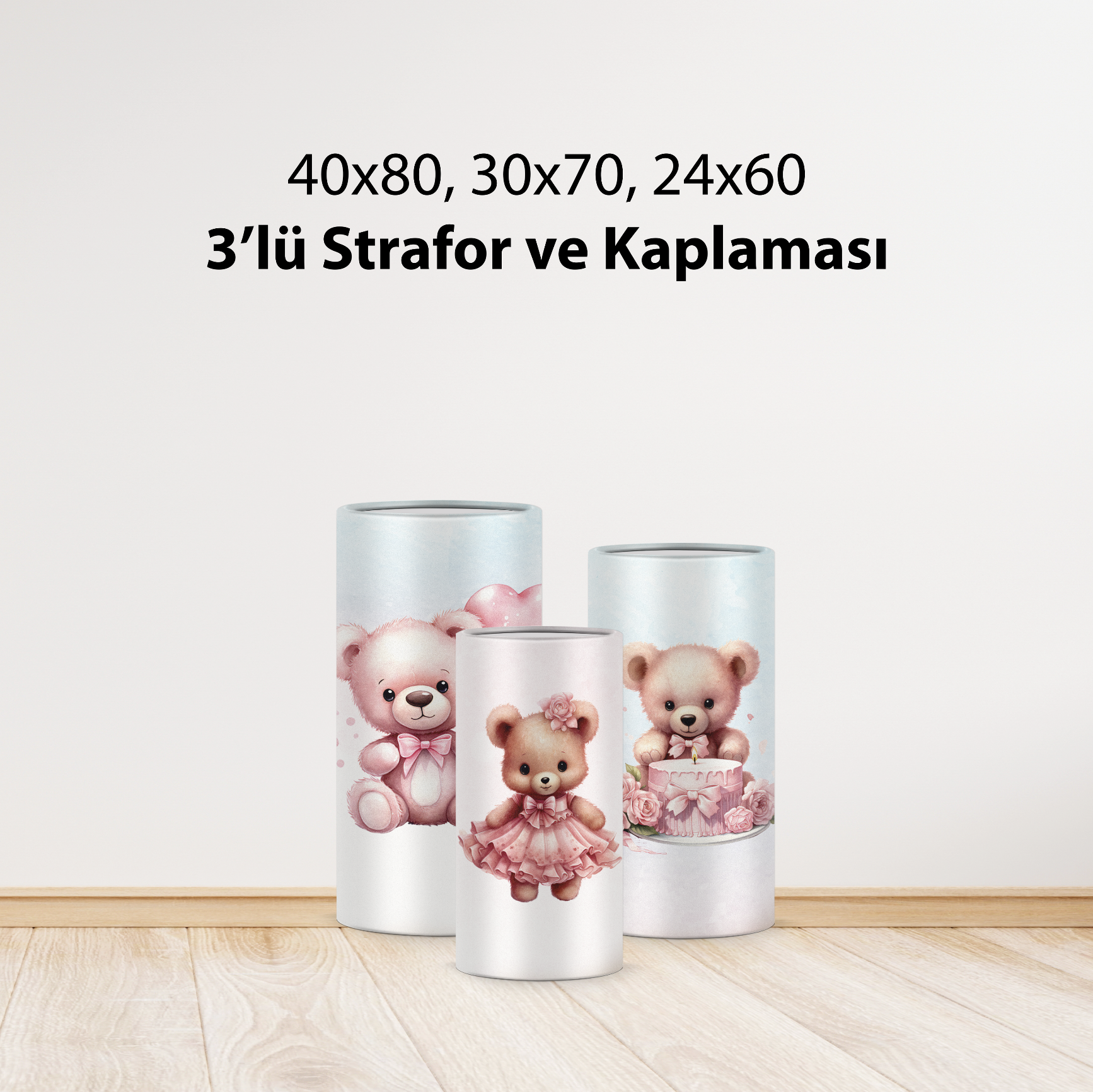 40x80, 30x70 ve 24x60 cm matruşka strafor ve kaplaması.
