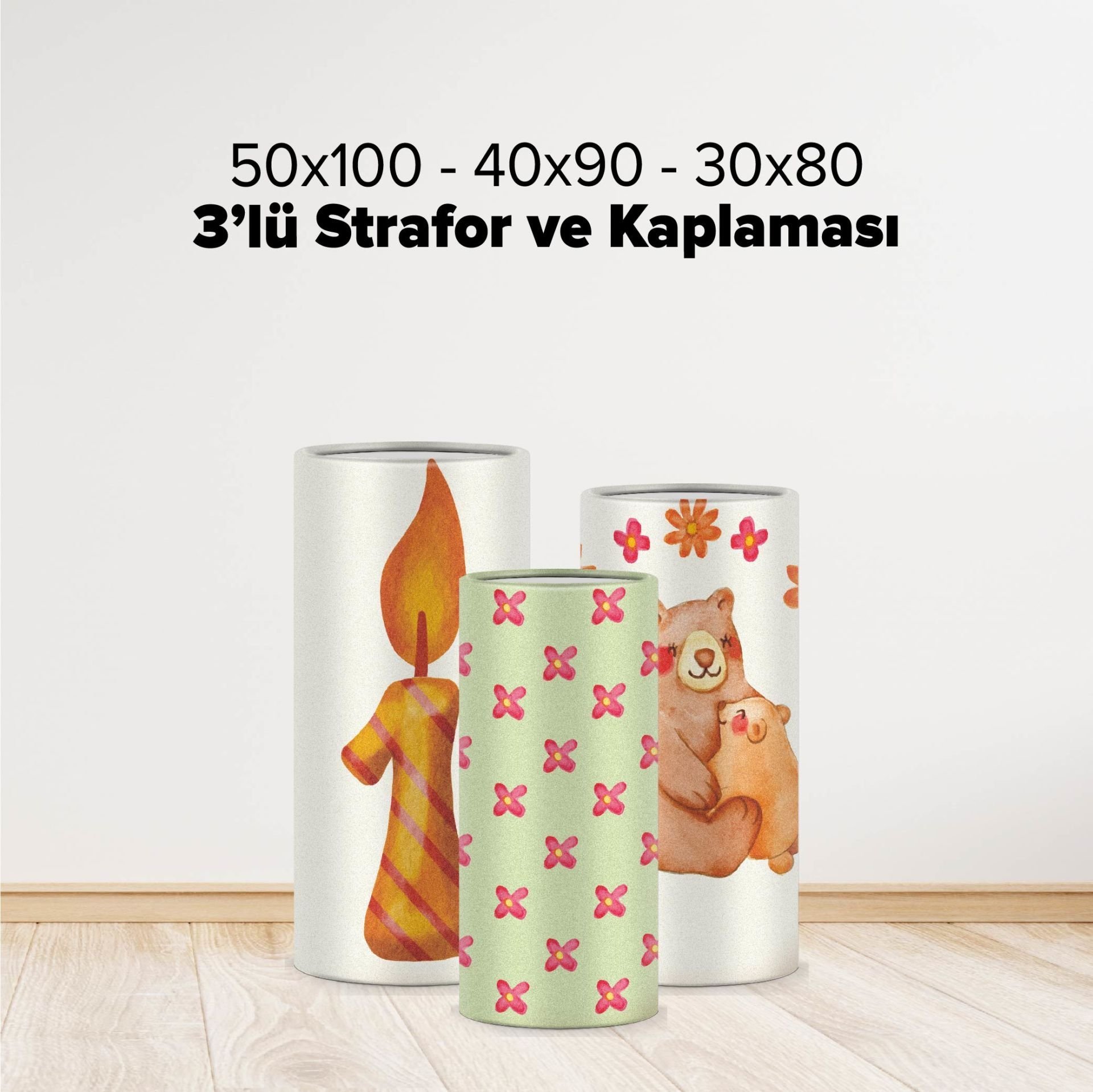 50x100, 40x90 ve 30x80 cm matruşka strafor ve kaplaması