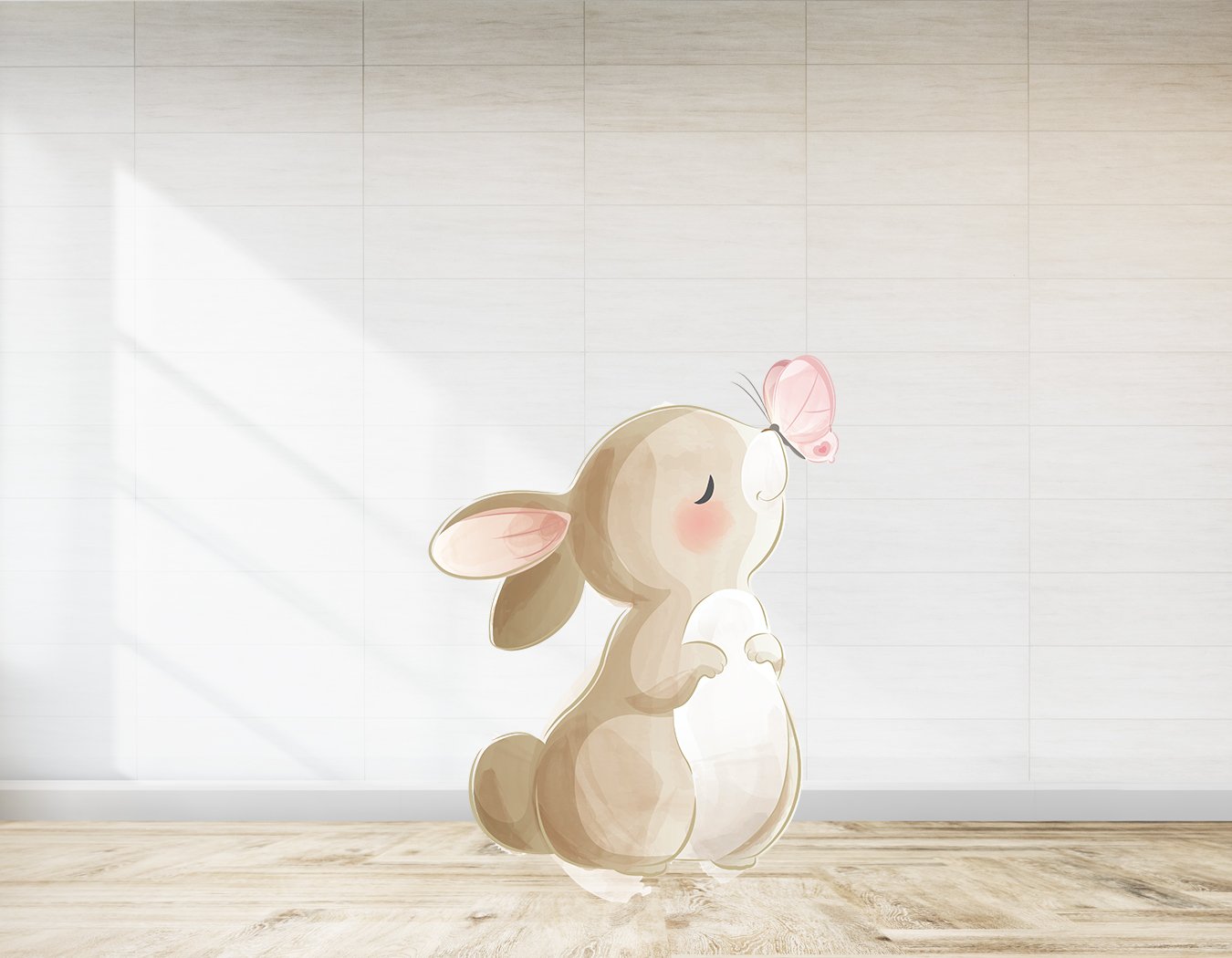 Pembe Kelebekli Tavşan Baby Shower İçin Ayaklı Pano
