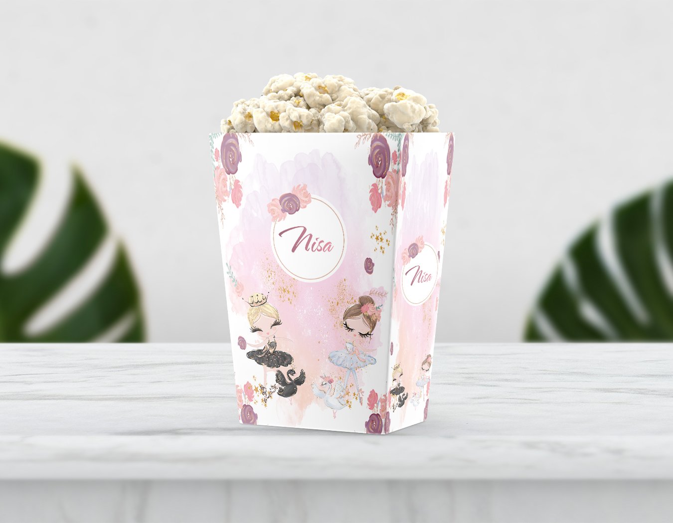 Balerin Temalı Çiçekli Pop Corn Etiketi