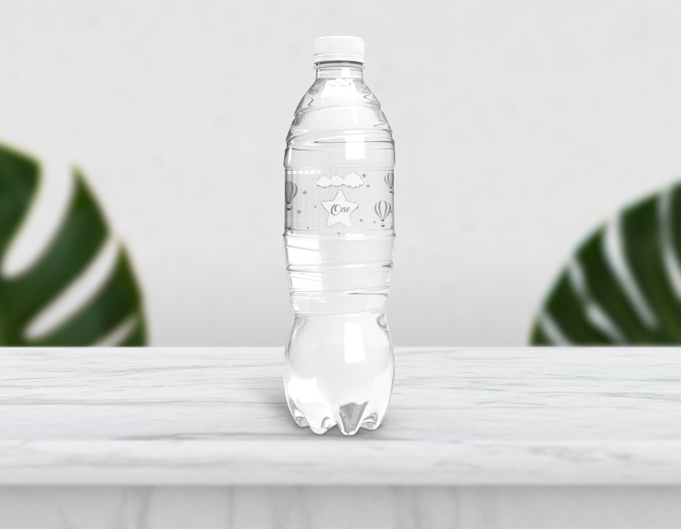 Balonlu Gri Su Şişesi Etiketi