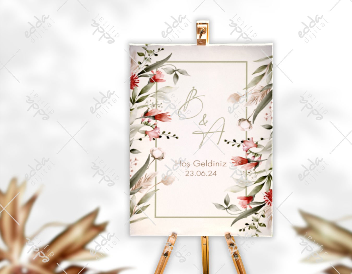 Çiçek Desenli Karşılama Panosu Çiçek Desenli Karşılama Panosu Edda Dijital'de! Birbirinden farklı dijital baskı afişler, parti ürünleri ve daha fazlası için tıklayın! P116