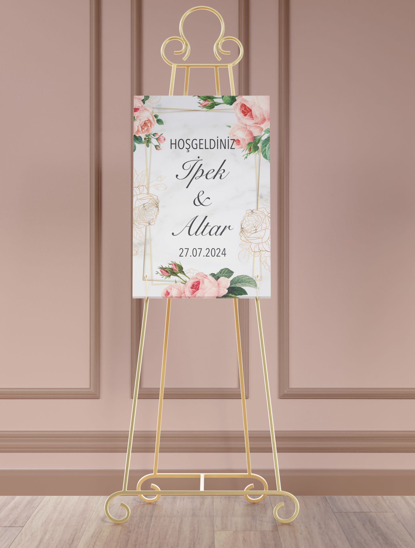 Çiçek Desenli Karşılama Panosu