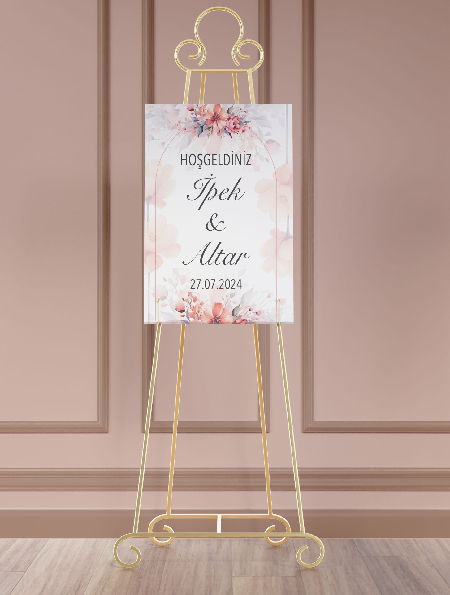 Çiçek Desenli Karşılama Panosu