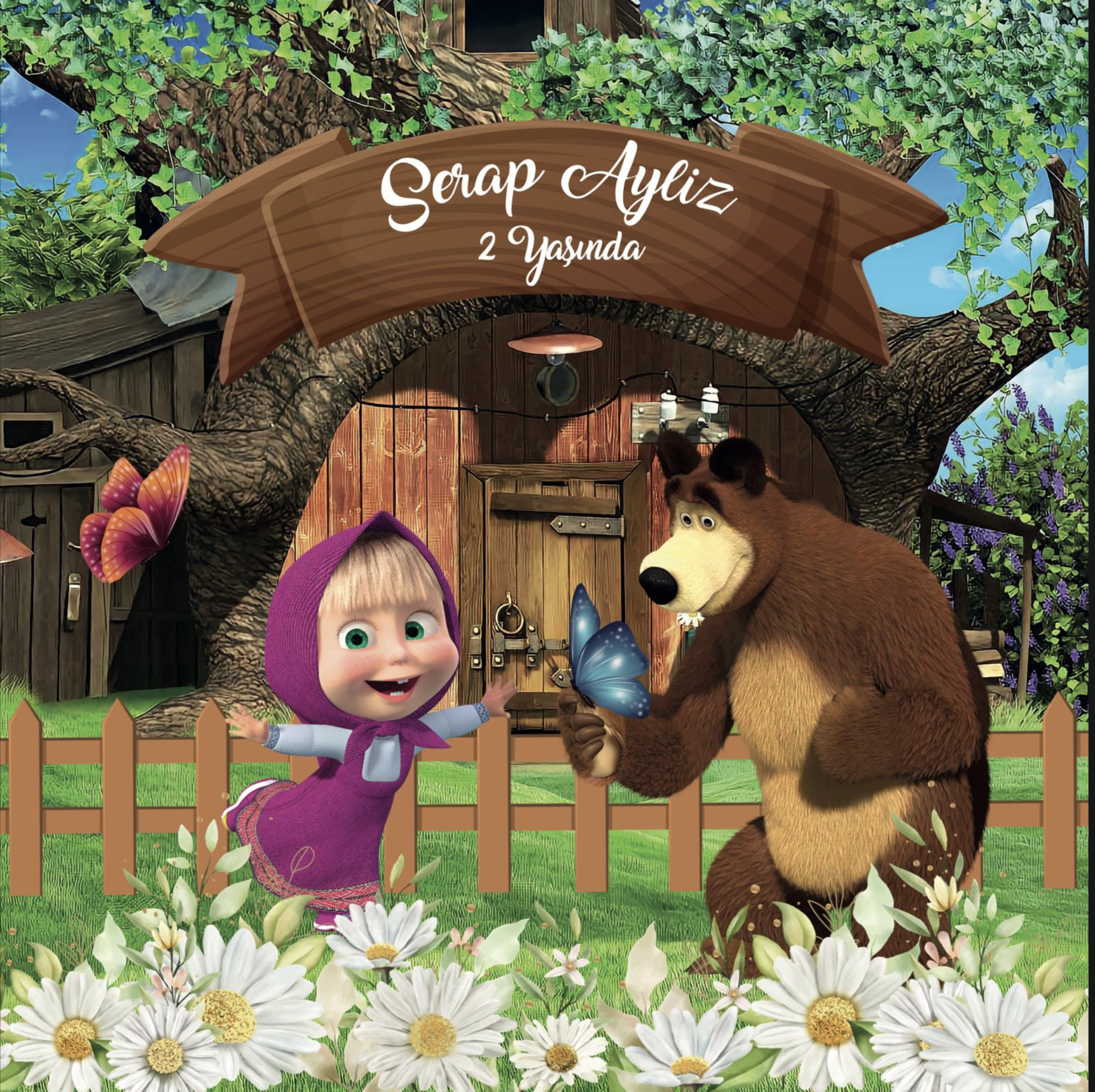 Maşa Koca Ayı Temalı Doğum Günü Afiş