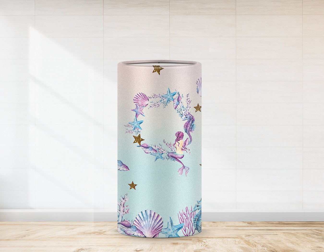 Deniz Kızı ve Deniz Canlıları Temalı Strafor Kaplaması 131 cm x 101 cm ( çap 40 cm x h 100 cm ) - Branda Baskı