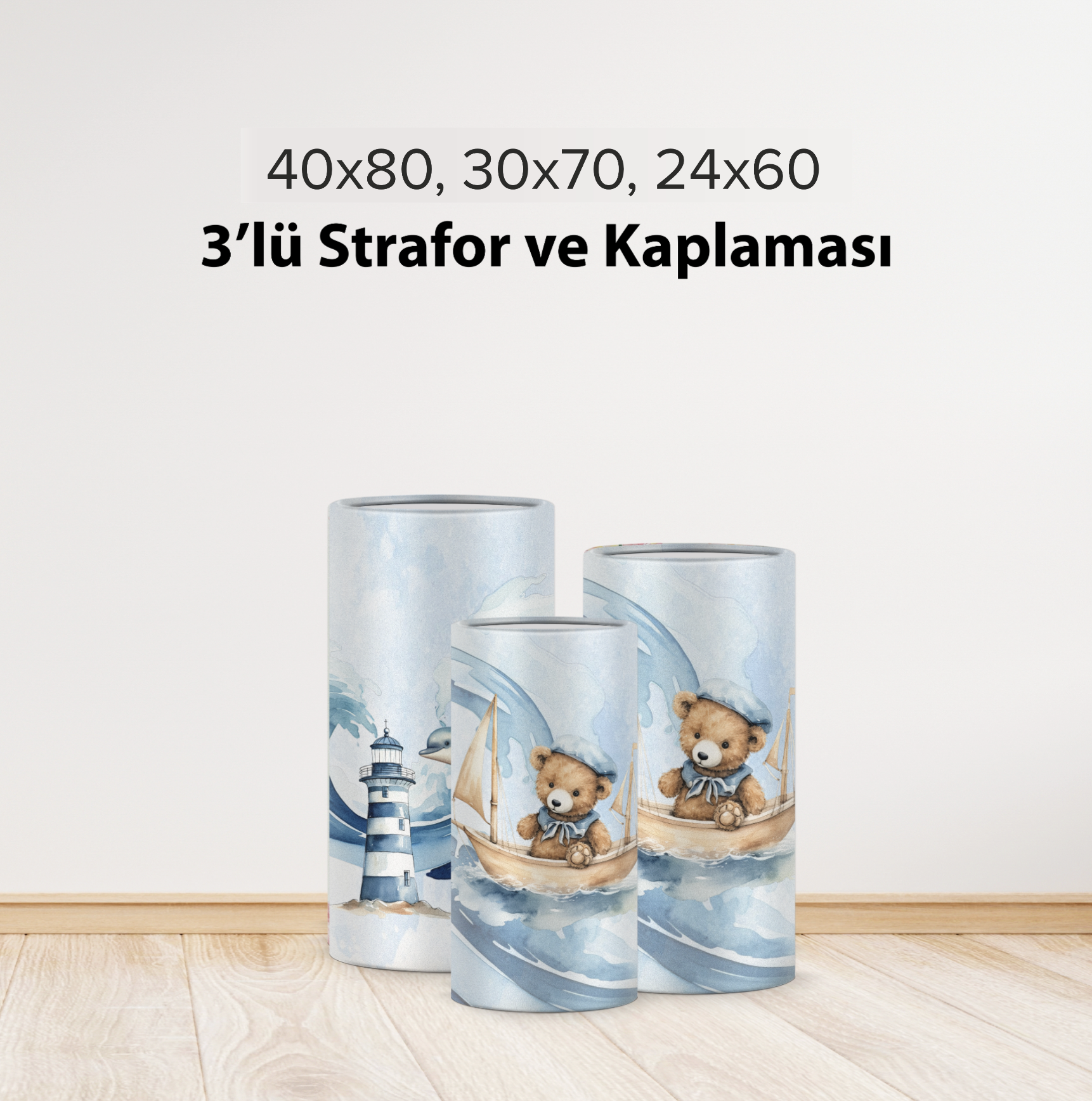 40x80, 30x70 ve 24x60 cm matruşka strafor ve kaplaması.