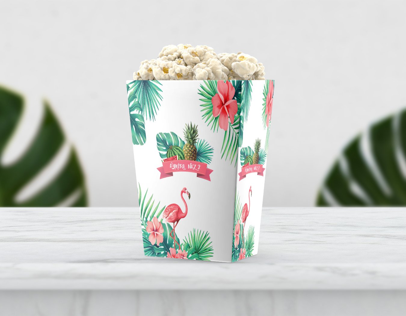 Flamingo Temalı Ananaslı Pop Corn Etiketi
