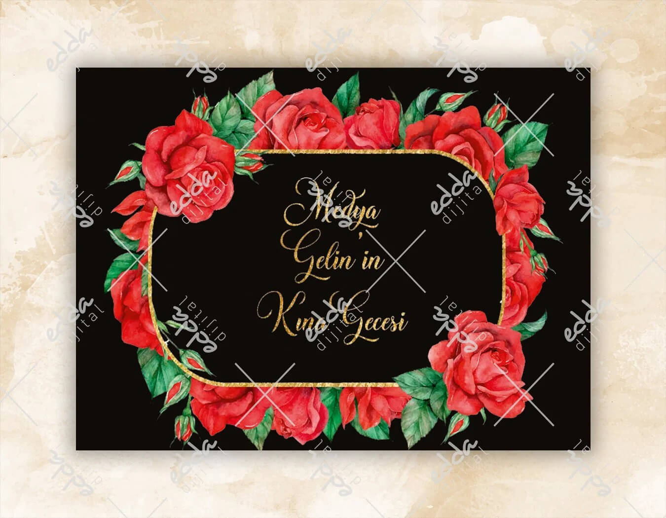 Gül ve Yaprak Desenli Kına Pisti Kaplaması Gül ve Yaprak Desenli Kına Pisti Kaplaması Edda Dijital'de! Birbirinden farklı dijital baskı afişler, parti ürünleri ve daha fazlası için tıklayın! S30