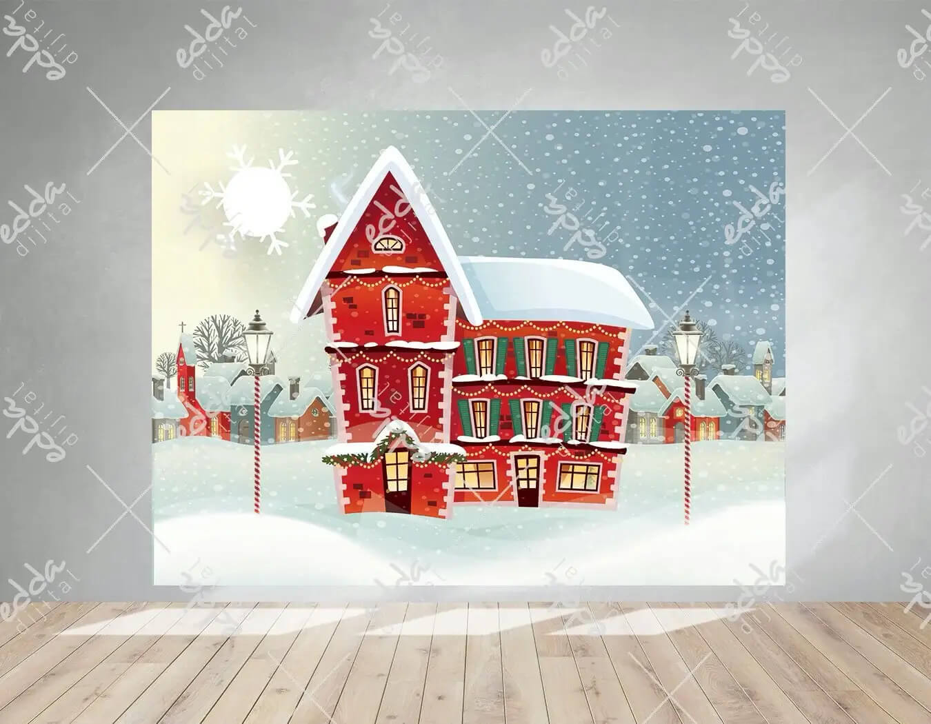 Kış Konsept Kırmızı Ev Temalı Parti Afiş