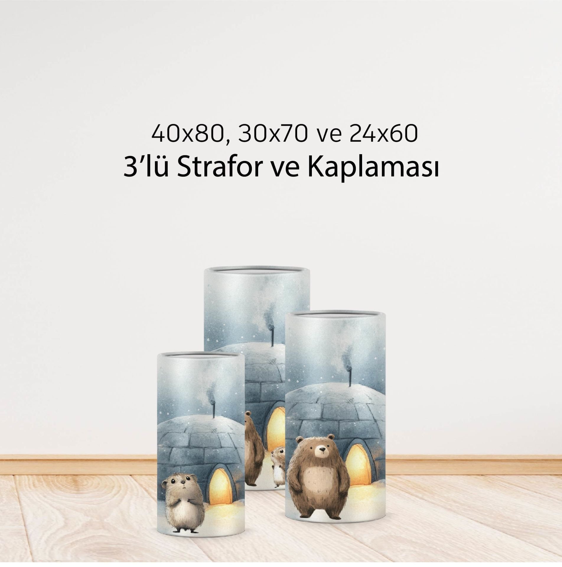 40x80, 30x70 ve 24x60 cm matruşka strafor ve kaplaması.