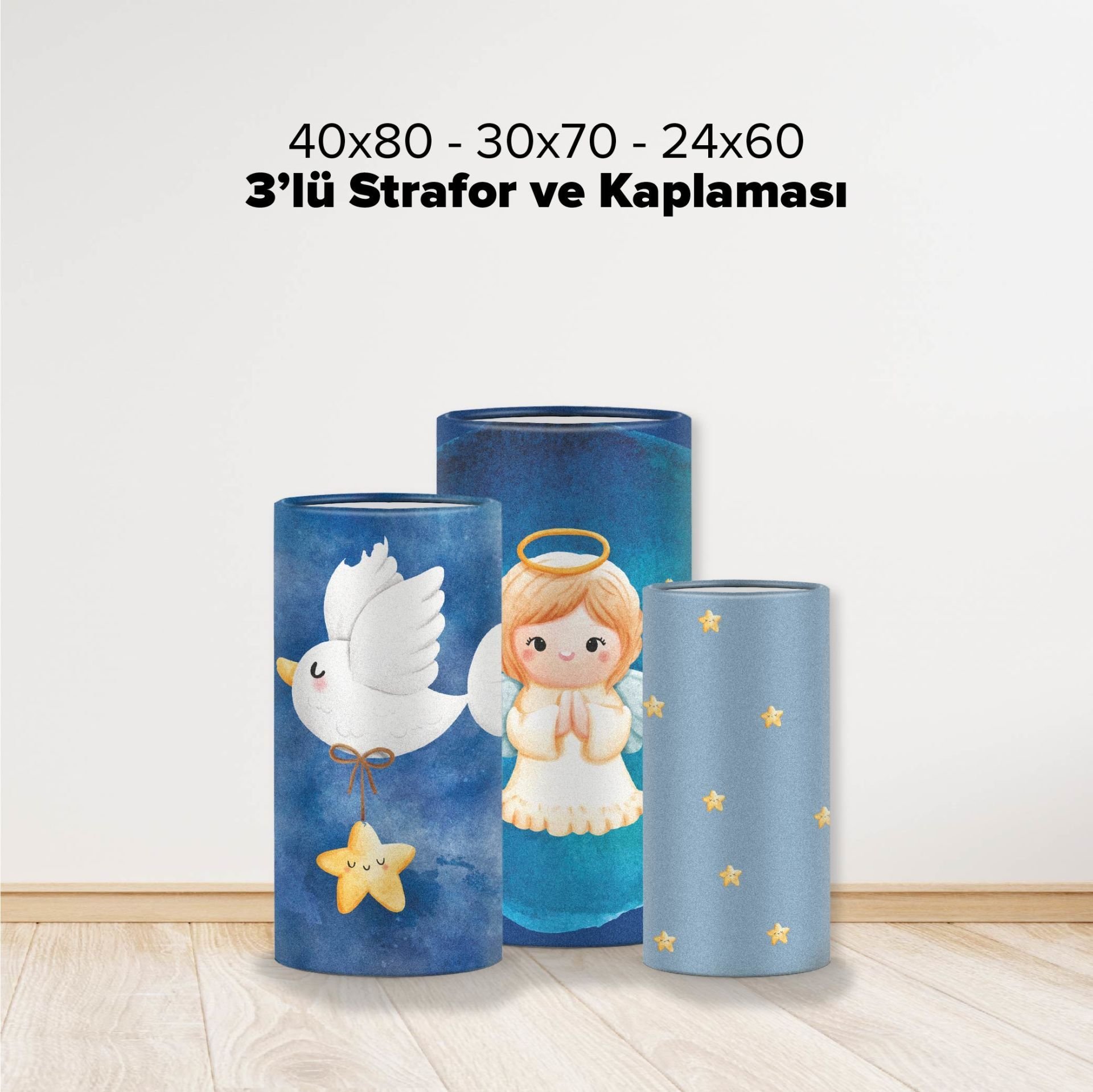 40x80, 30x70 ve 24x60 cm matruşka strafor ve kaplaması.