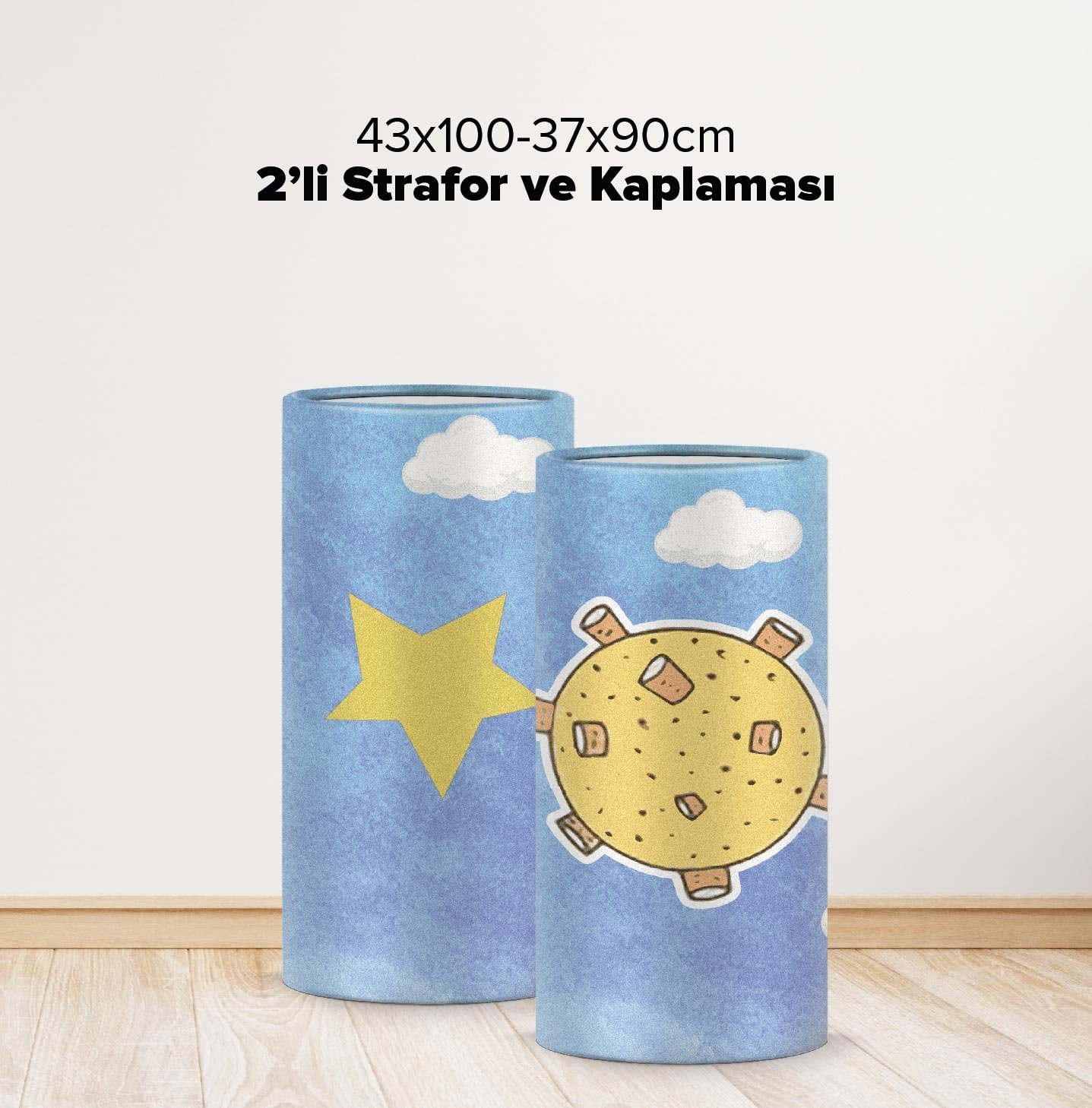 - Ayaklı figürler 5mm fotoblok üzeri folyo baskıdır.