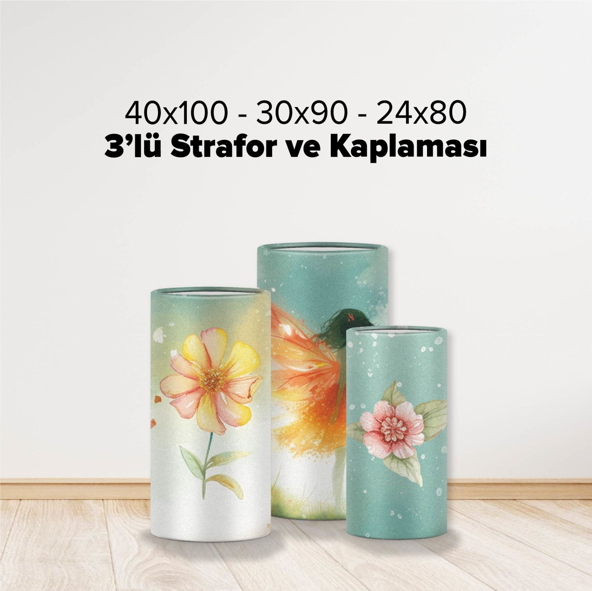 40x100, 30x90 ve 24x80 cm matruşka strafor ve kaplaması