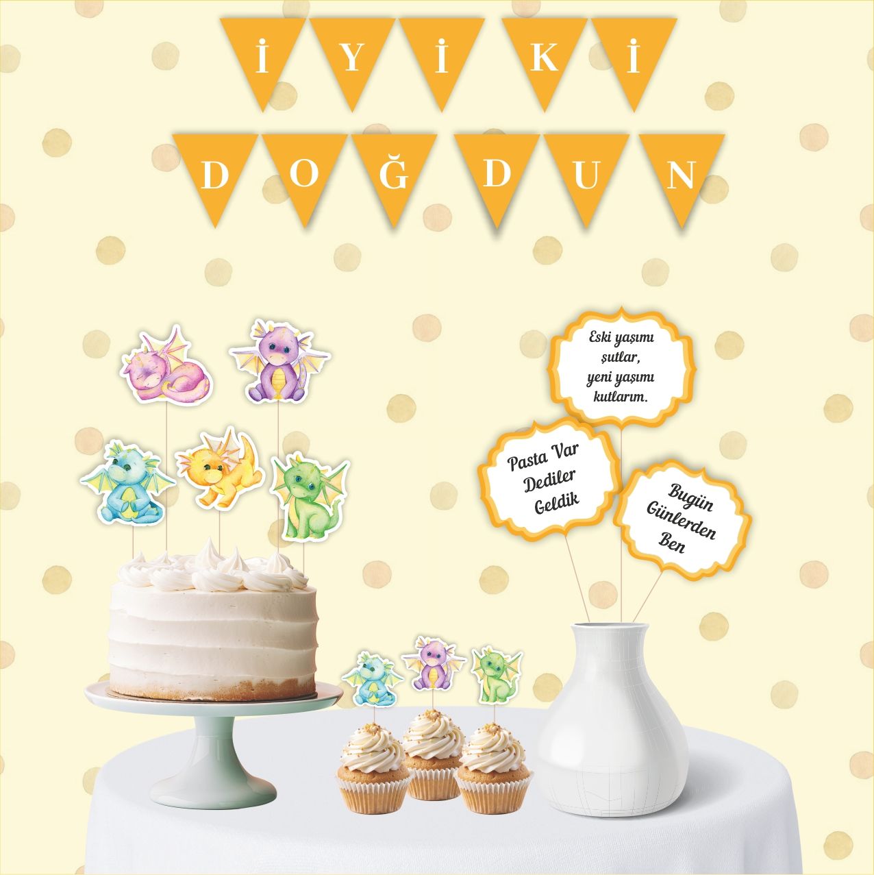 • Not: Maket Pasta, cupcake, vazo görsel amaçlıdır. Ürünlere dahil değildir.