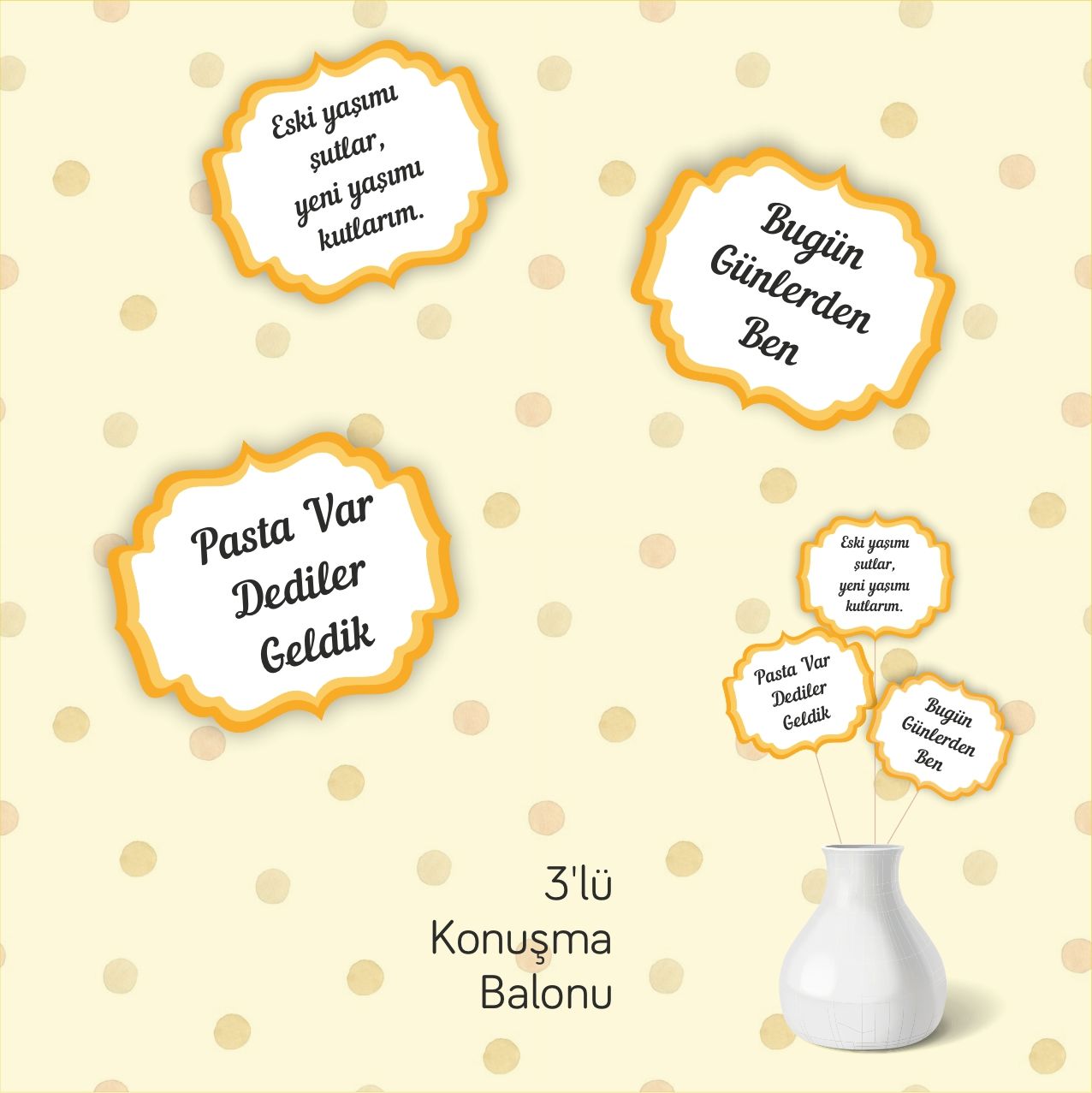 • Konuşma Balonları 3 Adet teki 15x12 cm dir.