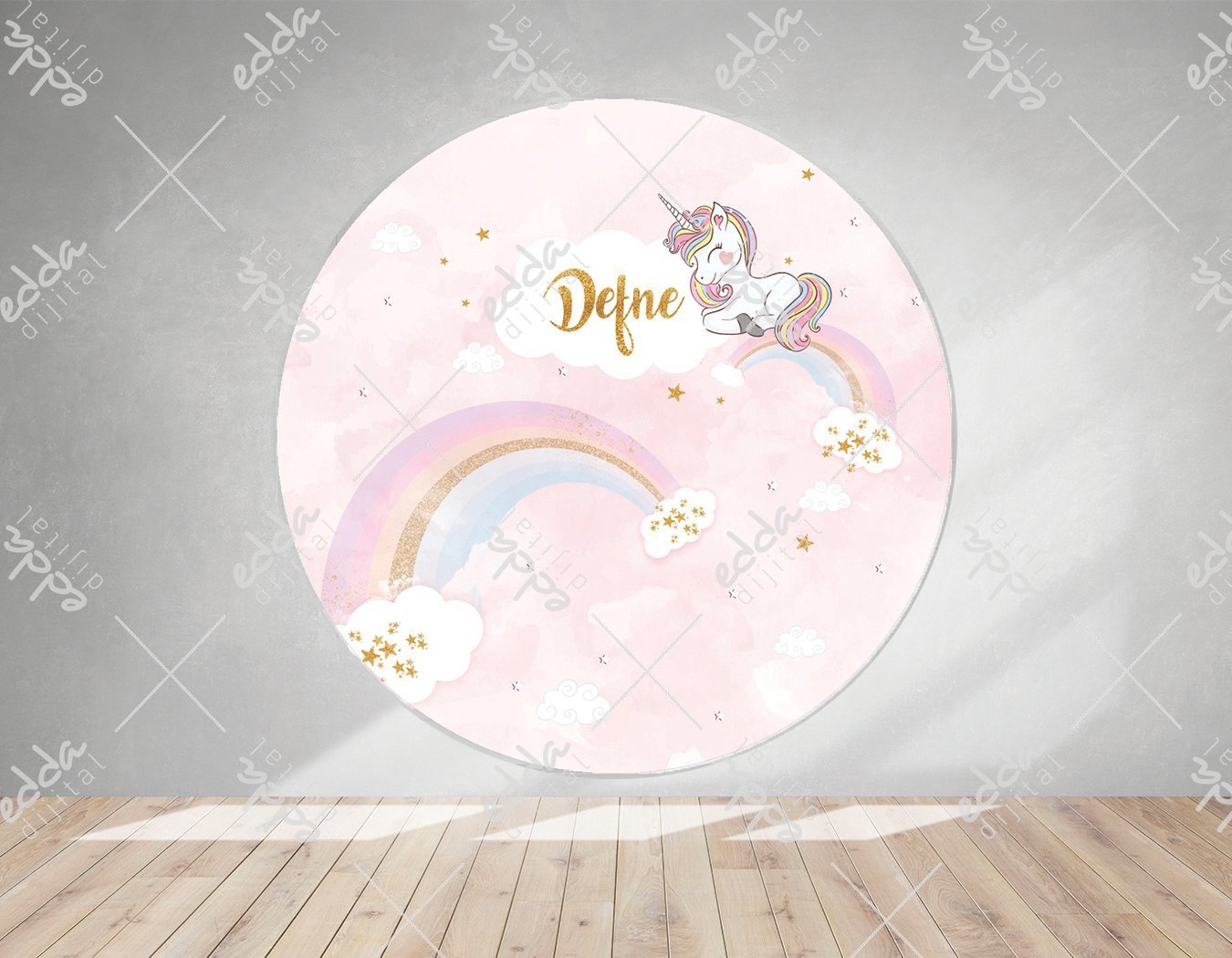 Unıcorn Temalı İsim Baskılı Yuvarlak Afiş