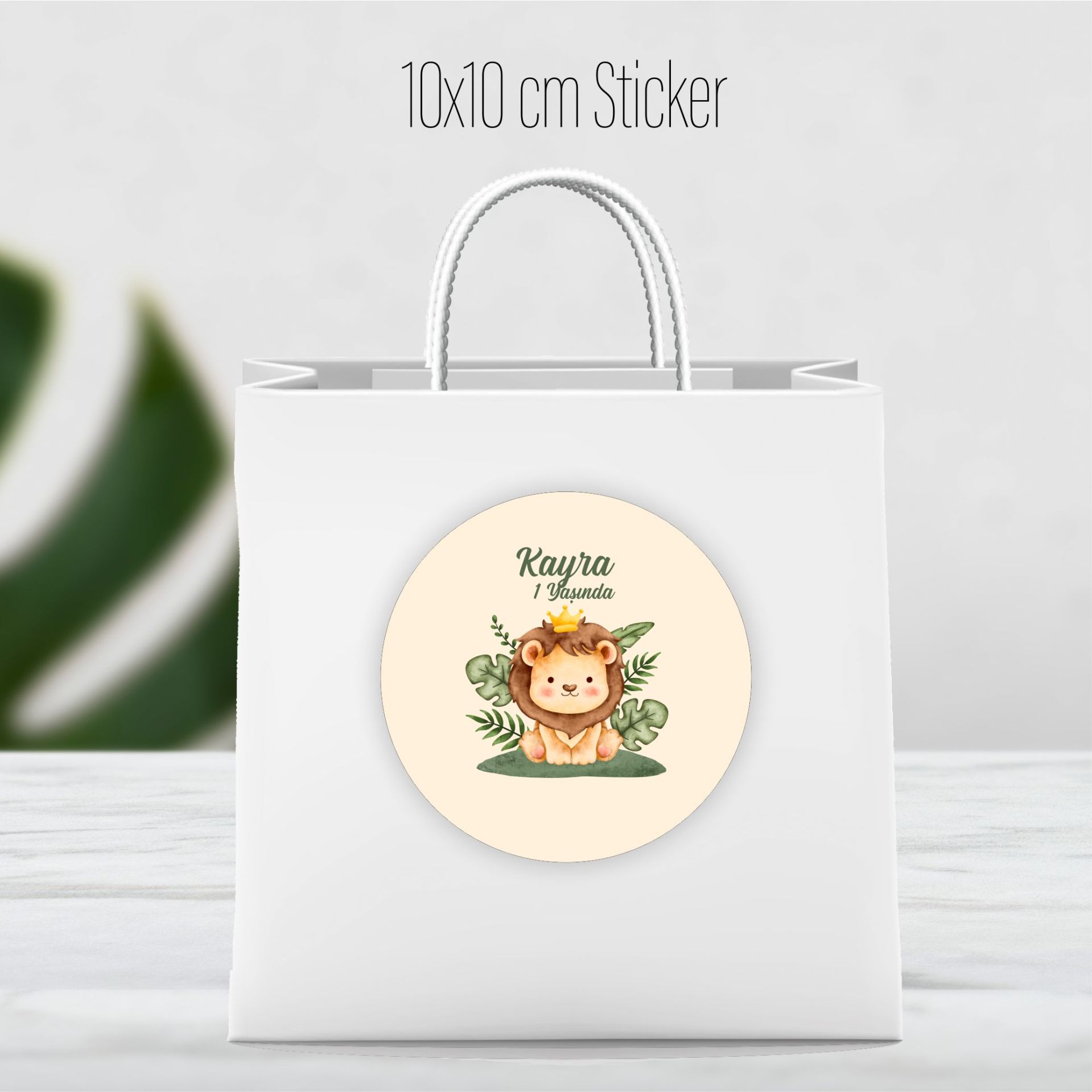 Bir setin içinde 10 - 20 - 30 - 40 - 50 Adet 10x10 cm mat kuşe yuvarlak sticker/etiket bulunmaktadır. Her bir sticker/etiket 10 cm ebatındadır. Çıkartma şeklinde arkası yapışkanlıdır.