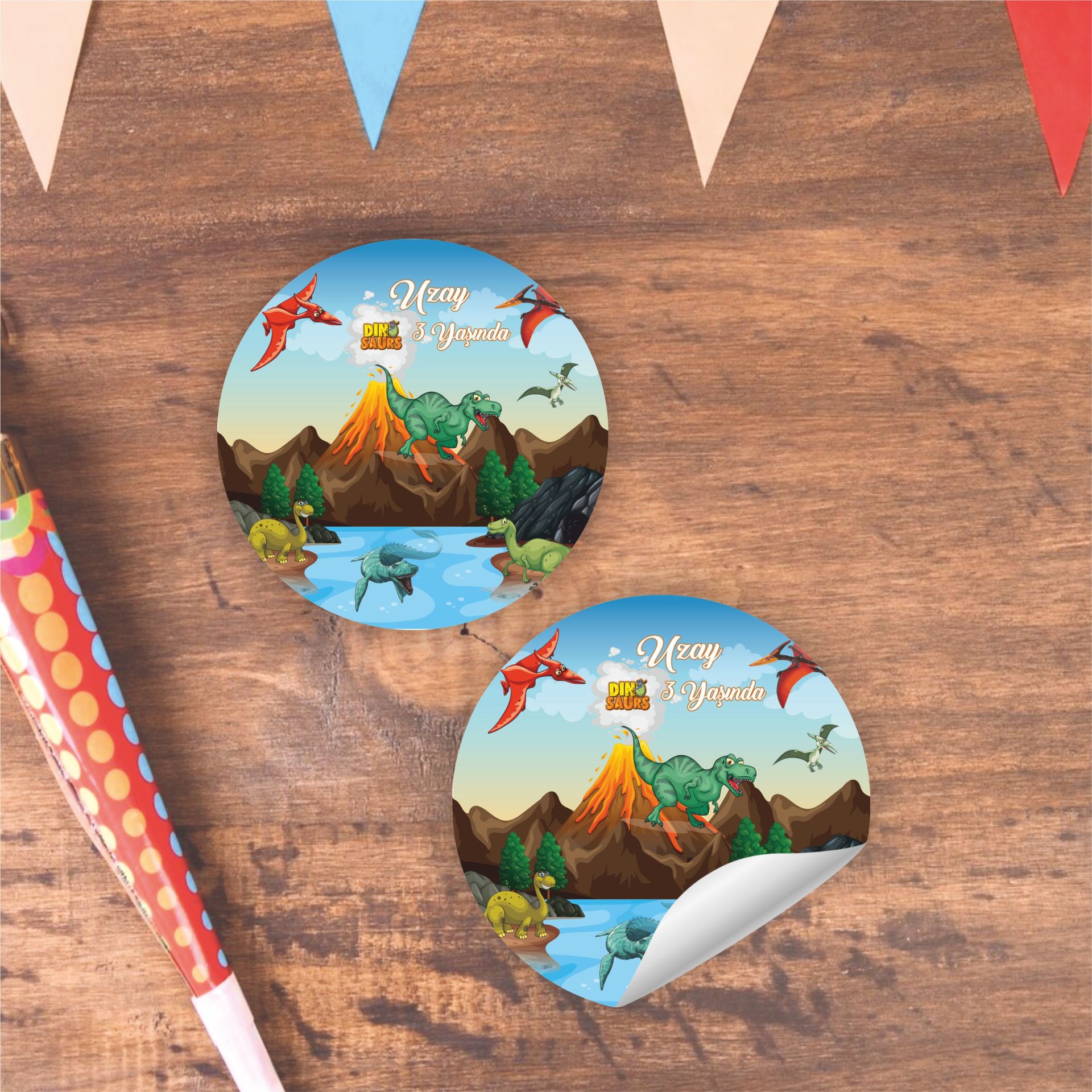 Bir setin içinde 25 - 50 - 75 - 100 Adet 5x5 cm mat kuşe yuvarlak sticker/etiket bulunmaktadır. Her bir sticker/etiket 5 cm ebatındadır. Çıkartma şeklinde arkası yapışkanlıdır.