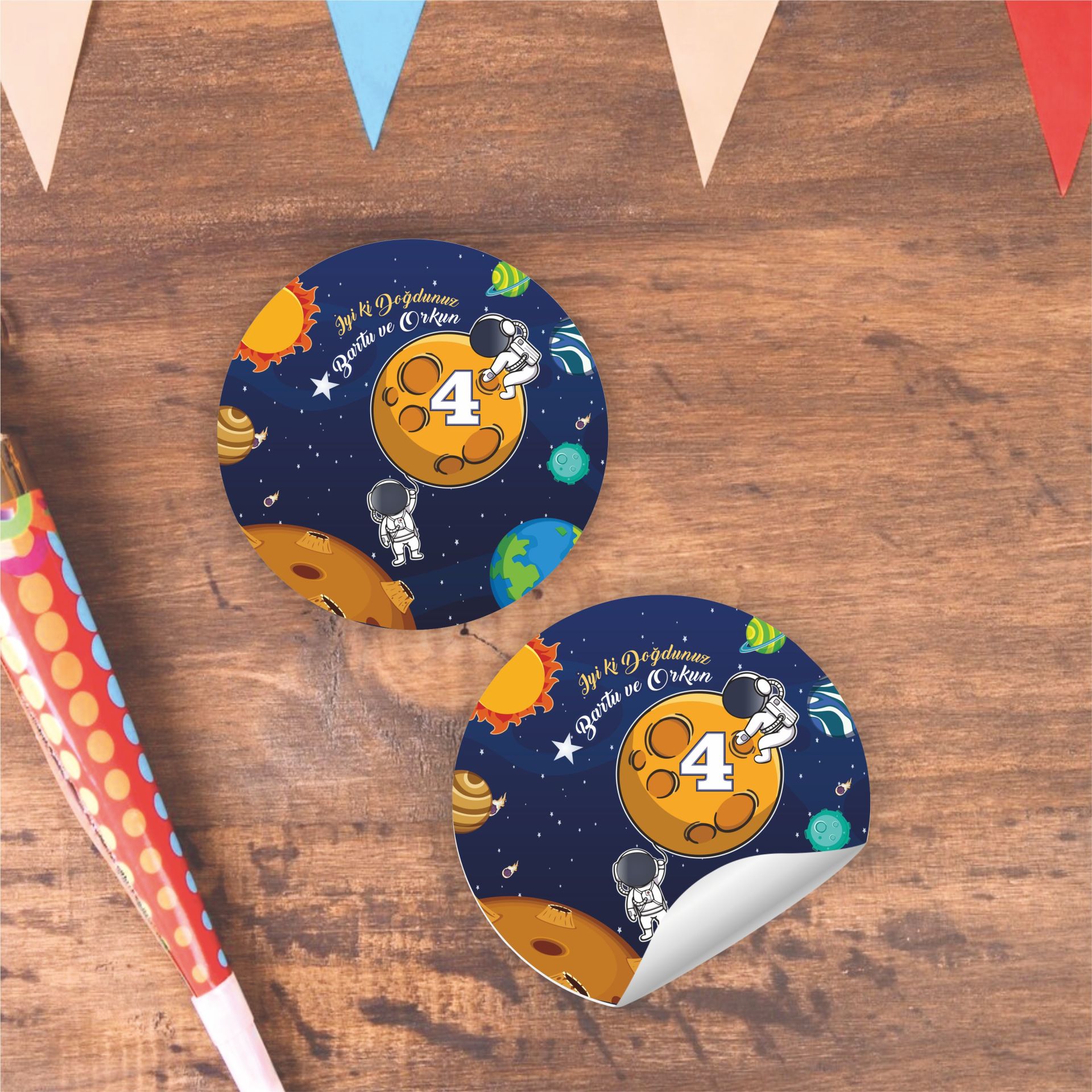 Bir setin içinde 25 - 50 - 75 - 100 Adet 5x5 cm mat kuşe yuvarlak sticker/etiket bulunmaktadır. Her bir sticker/etiket 5 cm ebatındadır. Çıkartma şeklinde arkası yapışkanlıdır.
