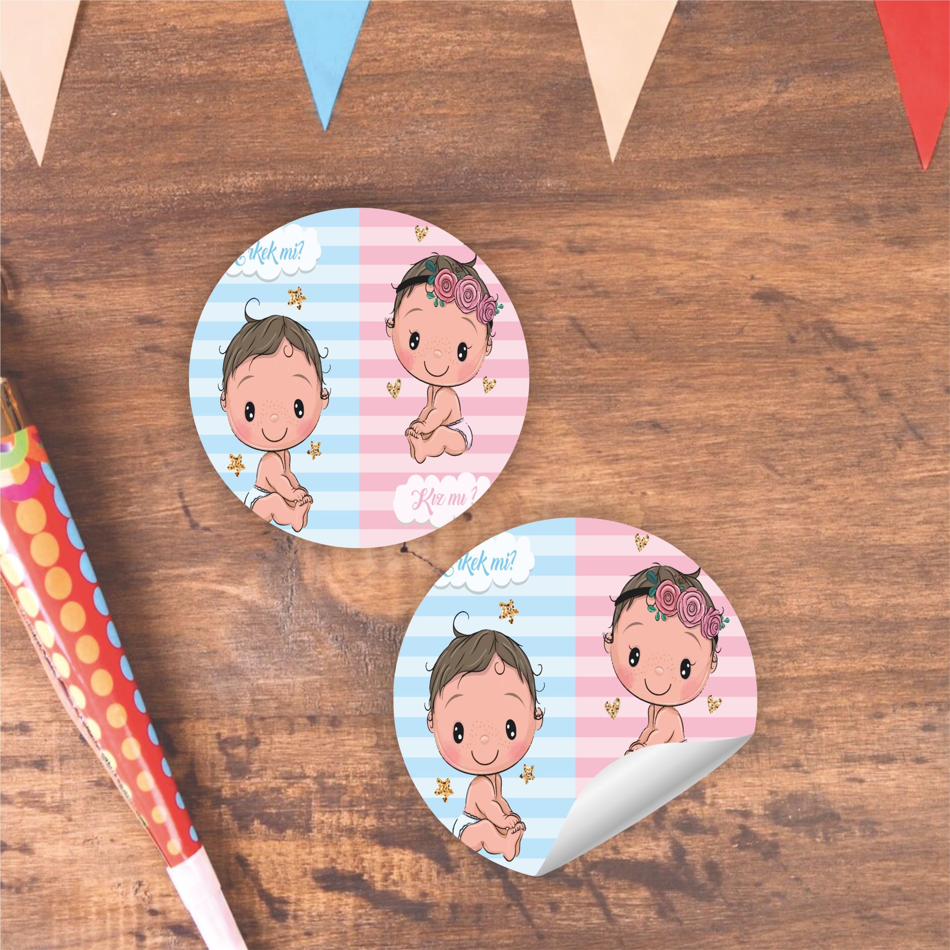 Bir setin içinde 25 - 50 - 75 - 100 Adet 5x5 cm mat kuşe yuvarlak sticker/etiket bulunmaktadır. Her bir sticker/etiket 5 cm ebatındadır. Çıkartma şeklinde arkası yapışkanlıdır.