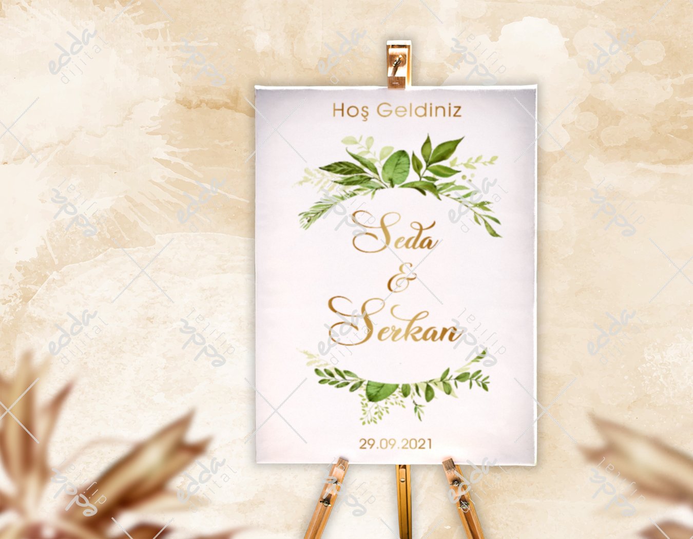 Yeşil Yaprak Desenli Karşılama Panosu Yeşil Yaprak Desenli Karşılama Panosu Edda Dijital'de! Birbirinden farklı dijital baskı afişler, parti ürünleri ve daha fazlası için tıklayın! P19